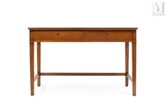 Exceptionnelle et rare bureau en noyer à plateau rectangulaire et piétement quadrangulaire relié par une entretoise en H. Il présente en façade un large tiroir orné de chaque côté de poignées en fer forgé patiné figurant des glands et des motifs floraux stylisés . Le plateau est composé d'une large plaque de cuivre gravée de roses épanouies et d'une araignée tissant sa toile. Une importante sculpture en ronde bosse figurant une femme nue assise sur la traverse latérale, les jambes pliées et les cheveux attachés ,tenant un porte document dans ses mains invite à la lecture. Signé et daté sur la traverse "R.Carabin 1899". Gravure de la plaque de cuivre par E.Bauduer. 76 x 165 x 89.5 cm (Hauteur avec sculpture 96.5 cm) (taches et rayures d'usage). Commande particulière pour Mr Darzens, conservée dans la famille.