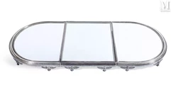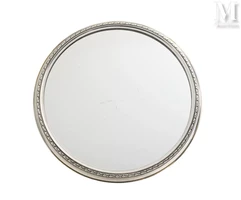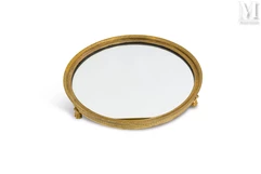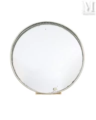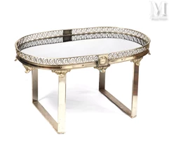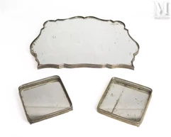 Un surtout de table du XIXe siècle à fond de glace, à contours mouvementés, monté en table basse. L’ensemble repose sur un piètement quadripode cambré en bronze argenté, estimé entre 300 et 500 euros, vendu 7 100 euros en février 2023 ;