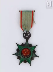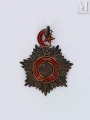 Un lit de camp pliant avec baldaquin, fabriqué par Marie-Jean Desouches. C’est un grand modèle en acier poli et bronze doré. Ses angles formés de quatre montants droits surmontés d'un gland en bronze supportent un dais composé de quatre tringles réunies en partie haute par un cercle. Le meuble d’époque Empire est adjugé 34 000 euros ;