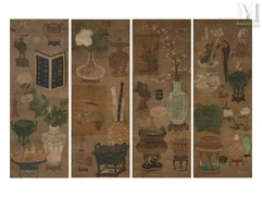Créé sous le règne de l'empereur Qianlong, un petit album composé de 8 doubles pages montées en accordéon est vendu 65 000 euros. Les pages de cet album sont peintes à l'encre et aux couleurs sur du papier, représentant des paysages lacustres et des sites célèbres où les sages et les lettrés aiment se retirer. L'album est signé par Guan Huai, un peintre de la cour impériale. Il est monté dans un album avec une couverture en bois de zitan, gravée du titre : « Yun yan xuan sheng », ce qui signifie « Les plus belles vues parmi les nuées » ;