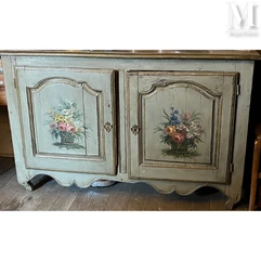 Une exceptionnelle commode en laque de Coromandel, de forme galbée, captive par son décor polychrome où se déploient des scènes de personnages évoluant au sein de paysages animés : ponts, pagodes, bateaux. Cet objet d'art d'une rareté remarquable est adjugé 1 270 000 euros. Dotée de deux tiroirs sans traverse, la commode repose élégamment sur des pieds cambrés. Sa richesse ornementale, composée de bronze ciselé et délicatement ouvragé, embellit chaque détail : les chutes ajourées, les frises encadrantes ornées de volutes et de feuillages, ainsi que les moulures à motifs d'oves, de culots et de sabots. Ce meuble est également marqué par le sceau S X, au centre duquel trône une ancre marine, attestant de son authenticité et de sa valeur historique.