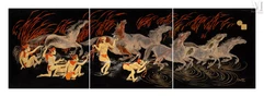 « Les neuf carpes », œuvre réalisée par Pham Hau (1903-1995) en 1938, est adjugée pour la somme de 400 000 euros. Ce paravent se compose de quatre panneaux en bois gravé et laqué, ornés de polychromie et d'or. Signé en bas à droite avec le cachet de l'artiste en caractères latins et idéogrammes chinois, il mesure au total 150,5 x 200 cm. Quelques rares petits éclats et frottements sont visibles sur l'œuvre.