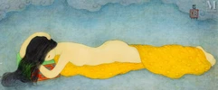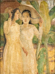 - un tableau intitulé « En plein air », qui s’envole pour 830 000 euros. Créée en 1940, cette peinture représente deux femmes vietnamiennes portant la tunique traditionnelle ao dài. L'une lit et l'autre dort. Ce tableau met en valeur la beauté féminine typique vietnamienne, avec ces dames maquillées et coiffées d'un élégant chignon ;