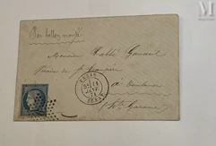 Une correspondance de ballons montés dont 5 ballons postes (n° 4, 7, 9, 10 et 13) et 3 lettres de journal, dont celles pour la ville d’Orléans. Le ballon poste n°8 est repêché « PP », les 3 ballons poste n’ont pas de timbres. Ce ballon monté est estimé entre 400 et 600 euros et adjugé 800 euros ;
