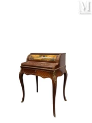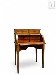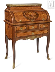 - Un bureau à cylindre d’époque Louis XVI en marqueterie à la Reine à décor de losanges et fleurettes, à décor d'un bouquet fleuri du XVIIIème siècle a été adjugé 1 400 euros en 2020 dans notre maison de ventes aux enchères Millon.