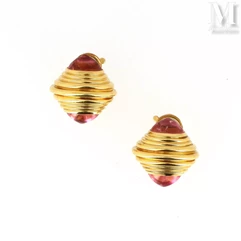 - Ensemble de six bracelets BOUCHERON en or jaune 18 k (750 millièmes) ornés de cabochons de corail et de diamants – Adjugé 34 000 euros.