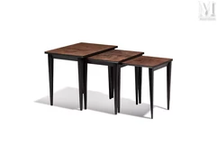 La Eames Coffee Table de Charles & Ray Eames se démarque par exemple avec son plateau en palissandre, en marbre ou en noyer massif américain selon le modèle. Cette table basse possède d’élégants pieds en bois pour souligner sa silhouette raffinée, dans sa version carrée ou rectangulaire.