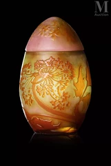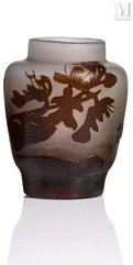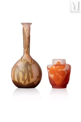 - « Clématite Viticella », une lampe en verre multicouche à chapeau en forme de champignon à bordure concave. Le pied évasé est à col droit et épaulé d’une large base circulaire ornée d'une frise de feuilles gravées de couleur brun orangé. Cette lampe estimée entre 8 000 et 10 000 euros est adjugée 9.200 euros en 2021.