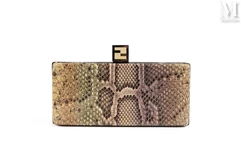 Un sac à main Fendi modèle Peekaboo, grand format en python gris avec garniture en métal doré et fermoir pivotant siglé, trouve preneur pour 2 500 euros. Ce modèle comprend une anse et deux compartiments intérieurs. La peau de python est une espèce dont le commerce est aussi soumis aux règles de la CITES (Annexe IIB).