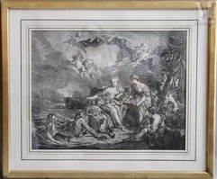 Allégorie de l’eau : Putto sur un dauphin, de Charles-Joseph Natoire (1700-1777) est une sanguine sur papier vendue 2 500 euros. Ce dessin de 21,5 x 19,2 centimètres présente un putto chevauchant un dauphin. Une gravure à l'eau-forte de Lalive de Jully existe d’après ce dessin ;