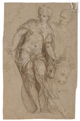 Supplicié le torse percé d’une lance, et croquis, un dessin d’Eugène Delacroix (1798-1863) réalisé au crayon noir sur papier beige est vendu 3 200 euros. Mesurant 13,8 x 22 centimètres, cette œuvre représente un supplicié. Le dessin est accompagné de croquis.