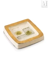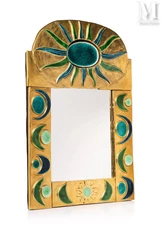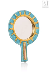 — Mithé Espelt marque son empreinte dans le domaine des boîtes à bijoux, avec des créations originales, comme un modèle en bois teinté noir adjugé 700 euros. Son couvercle, réalisé en céramique émaillée avec des teintes vertes et dorées, présente des motifs géométriques modernes. Elle possède des dimensions de 6,5 x 27 x 10 cm ;