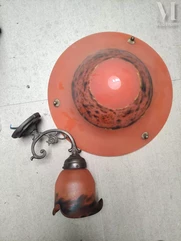 « Bol-abat-jour», une coupe en pâte de verre ornée de pommes de pin est adjugée 5 000 euros. Créée en 1913, cette œuvre arbore une frise dans des tons roses et verts. Ces motifs en relief ornent le pourtour de la large ouverture. Mesurant 5,5 cm de hauteur et 11,8 cm de diamètre, cette coupe est signée du cachet caractéristique de l’artiste ;