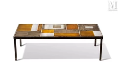 Un guéridon signé Roger Capron associant la céramique émaillée au métal laqué est adjugé 27 000 euros. Conçu en 1954, ce modèle se distingue avec ses lignes épurées et son style emblématique du design d'après-guerre. Ce meuble mesure 37 centimètres de hauteur, 55 centimètres de longueur et 20,5 centimètres de profondeur. Ce guéridon est répertorié dans le catalogue commercial de la Poterie du Font des Horts de 1954.