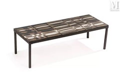 - Un ensemble composé d'une table basse et de trois tables gigognes, alliant des structures en métal chromé et des plateaux en carreaux de céramique craquelée, est vendu 4 000 euros. Les carreaux sont émaillés en polychrome et chaque pièce est signée R. Capron. Les dimensions sont respectivement de 39 x 101 x 41 centimètres pour la table basse et de 30 x 30 x 30 centimètres pour chaque table gigogne ;