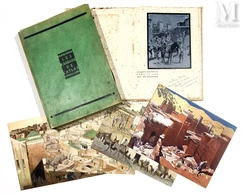 L’œuvre « La vie de Mohammed » par Étienne Dinet est adjugée 23 500 euros. Cette édition précieuse de Paris, Piazza, 1918, est enrichie par un maroquin vert à décor oriental réalisé par Durvand. Cet exemplaire de tête, tiré à 25 unités, comprend 47 planches en couleur, 35 réalisées par Dinet et 12 par Racim. Une enluminure de Racim, signée et datée « Alger 1917 » et une peinture à l'huile sur papier signée par Dinet sont particulièrement remarquables.