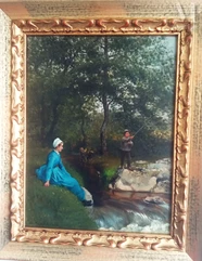 Adolphe Martial POTEMONT (1828-1883) "La partie de pêche" Huile sur bois