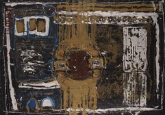Parallèlement, il s’oriente vers la peinture. Ses premières œuvres sont figuratives, représentant des paysages marocains, mais dès sa première exposition en 1959, il opte pour un support singulier : la toile de jute. Il réside alors au Foyer des Étudiants Maghrébins, dirigé par Monique de Gouvenain, qui le soutient activement et l’exposera régulièrement dans sa future Galerie Solstice, de 1966 à 1968.