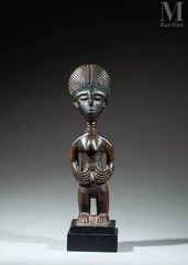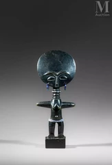 Le peuple Ashanti s’est enrichi dès le XVIIIe siècle à travers des échanges commerciaux et a développé de fructueuses relations avec les occidentaux. Les sculpteurs de cette ethnie ont pour coutume de représenter différents thèmes tels que la féminité, la maternité ou la fertilité. Les poupées Ashanti sont des objets très appréciés. En bois, sobres et élégantes, elles sont facilement identifiable grâce à leur structure simplifié et leur tête circulaire disposé d’un haut front. Les poupées étaient portées par les femmes enceintes, dans leur pagne, pour une grossesse sereine.