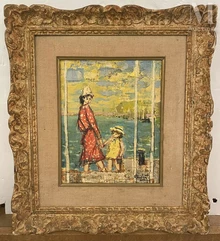 Mère et enfants en bord de mer