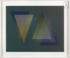 Né en 1923 et mort en 2019, Carlos Cruz-Diez est un peintre vénézuélien naturalisé français. Il est l’un des principaux représentants de l’art optique et cinétique. Il se forme à l’Ecole des Beaux-Arts de Caracas en 1940. Durant les années 1940 et le début des années 1950, il travaille principalement comme dessinateur graphique pour des entreprises et illustre des journaux. Il fonde en 1957 l’Estudio de Artes Visuales dédié au dessin graphique et industriel. En 1961, il participe à l’exposition Bewogen Bewegin au Stedelijk Museum à Amsterdam, aux côtés d’Alexander Calder, Marcel Duchamp, Jean Tinguely, Victor Vasarely, Laszlo Moholy-Nagy ou encore Robert Rauschenberg. En 1965, il participe à l’exposition fondatrice de l’art optique du MoMA, « The Responsive Eye ».