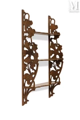 A cet égard, l’historien d’art Gabriel Badea Păun déplore[5] que rien ne permette à ce jour d’en savoir plus sur un vase "à décor de toile d’araignée connu de nos jours sous le nom Carmen Sylva" et dont "un exemplaire [serait] conservé au Hida Takayama Museum of Art au Japon". Nous le déplorons avec lui car - toujours selon ses écrits - ce vase porterait l’inscription : "Septembre de jour baisse, sois lumière oh mon cœur, Carmen Sylva" … soit à peu de choses prêts celle de cette étagère.