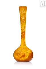 Emile GALLE (1846 - 1904), Cristallerie "Papillon et Libellule" circa 1884. Superbe haut vase en verre transparent ambré adjugé 32.000 euros chez MILLON