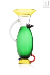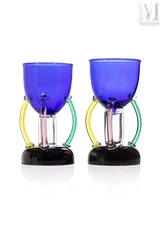 Dans la plus grande tradition du verre Italien, ces vases seront réalisés à Murano, par la Toso Vetri d’Arte, en 1982. Et, dans la plus pure tradition iconoclaste et transgressive qui est la sienne, Sottsass fera dépendre la forme de ses vases d’un assemblage à la colle chimique.