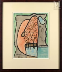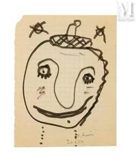 Gaston CHAISSAC (1910-1964), Tête Rose, 1963 Gouache et collage sur papier portant le cachet de l'atelier en bas à gauche 60 x 40 cm, adjugée 5 500 € lors de la vente Post-War et Art Contemporain du 12 juin 2019 à Paris.