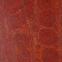 George Ward n’étant plus tout jeune, il a dû se résigner à gagner la ville où la vie est plus simple, la possibilité de se soigner facile. Pourtant pendant longtemps George Ward s’y est refuse. « Je suis un homme du Bush, Moi » répond –t-il à une interview avec fierté il y a quelques années. Il est né sans doute au tout début des années 1940. Son père meurt lorsqu’il est jeune. Il rencontre pour la première fois des hommes blancs alors qu’il est encore adolescent et qu’il campe avec sa famille près d’un point d’eau. Il s’agit des membres d’une « commonwealth Welfare Patrol ». Ils seront amenés jusque Papunya, là où va apparaître le mouvement pictural. Il occupe plusieurs postes dans la cuisine communautaire, comme pour de nombreux hommes, cela faisant partie de la politique d’assimilation. En général, ceux qui refusaient ces postes ne pouvaient pas manger à la cantine. Après son mariage avec Nangawarra, issue d’une des familles importantes du désert, et la naissance de leur premier enfant, ils se déplacent vers Warburton, Docker River, Warakurna et enfin Kintore où ils finissent par s’installer. Devenu un homme de loi important et suivant l’exemple de ses frères, George se met à peindre. Pour la conservatrice de la National Gallery of Victoria, sous le charme de sa peinture à la fois puissante et délicate, George a attendu pour se lancer dans la peinture de maîtriser les connaissances, d’en avoir une idée synthétique pourrait-on dire. La terre, les sites sacrés et toutes les histoires qui y sont associées sont représentés à l’aide de quelques lignes formant comme un labyrinthe. On y voit rien, juste ces lignes mais elles décrivent des histoires complexes mettant en scène les Ancêtres et comment ils insufflèrent la vie dans cette région, l’une des plus isolée du monde, et surtout le déplacement et les actions des Ancêtres Tingari. Une fois déposé les points, généralement blancs, la toile, illuminée, prend toute sa force. Les œuvres de George Ward Tungurrayi figurent dans d’importantes collections privées et publiques.