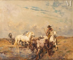 Particulièrement fasciné par le tumulte des cavalcades équestres, des fantasias, les chevaux fiers, les cavaliers prêts à l'assaut, ses tableaux, ,servos par une parfaite maitrise des technique apprises des maitres anciens, brillent de soleil et d'ambiance festives ou guerrières.