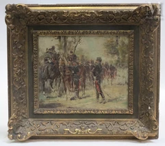 Peintre de scenes de genre, de portraits, de chevaux et aussi de scènes militaires, Jules-Elie Delaunay, élève d’Emile Adam et de Paul Laurens, expose aux salons entre 1868 et 1905. Avant tout peintre-décorateur, sollicité pour de grands programmes décoratifs civils et religieux à Paris comme à Nantes, Jules-Elie Delaunay réalise assez peu de peintures de chevalet. Son chef-d’œuvre est sans doute La Peste à Rome, qui lui vaut les honneurs de la critique au Salon de 1869.