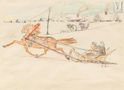 Troïka lancée au galop dans la neige.