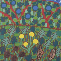 Daisy est née vers le milieu des années 1950. C'est l'une des artistes phares de la communauté d’Haasts Bluff. Elle décrit « son Pays » de façon figurative avec une vision un peu idyllique.