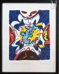 Né en 1959, François Boisrond est un peintre français qui participe au mouvement de la Figuration Libre. Il se forme à l’Ecole Nationale des Arts Décoratifs de Paris entre 1978 et 1981 où il côtoie Hervé Di Rosa, Stéphane Trois Carrés et Manhu avec qui il s’engage dans le mouvement de la Figuration Libre dans les années 1980. Ce mouvement rassemble également Robert Combas, Rémi Blanchard et Catherine Viollet et a sa première grande exposition collective en 1983. Il est professeur de peinture à l’Ecole des Beaux-Arts de Paris de 1999 à 2021.