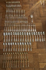 Venez enchérir sur vos prochains couteaux, fourchettes, cuillères, pot à oille, timbales, bols, carafes, théières, chocolatières, assiettes, tasses, coupes, coupelles ! Certains objets proviennent des plus belles maisons d’argenterie et d’orfèvrerie.