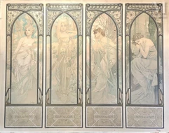 MUCHA Alphonse (1860-1939) : Les Heures du jour (Eveil du matin- Eclat du jour- Rêverie du soir- Repos de la nuit).